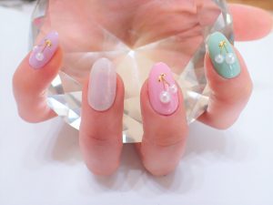 アートをする人差し指と薬指にはパステルミントを2度塗りです。