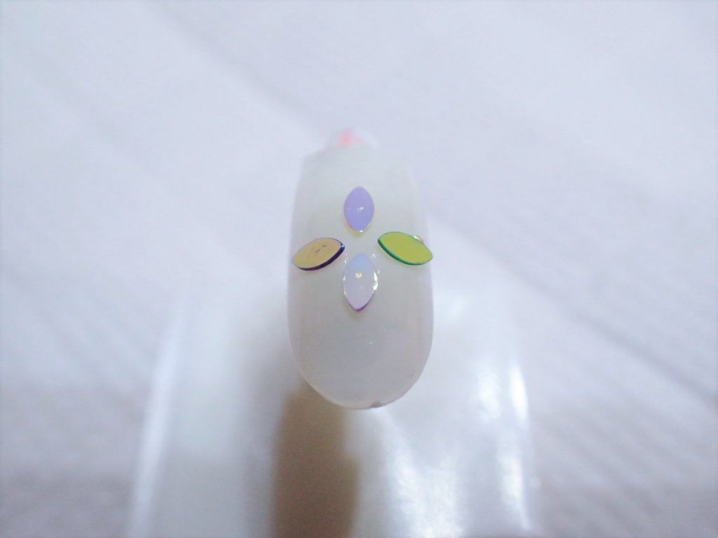 ワンカラーで他のカラーのわき役にも使えますし、キラキラ系のパーツを乗せる時のベースにはもってこいですね。通常カラーの上から一塗りすると、薄っすらホワイトがかって柔らかいカラーも作れます。応用が利くカラーなので第3位にランクイン!
