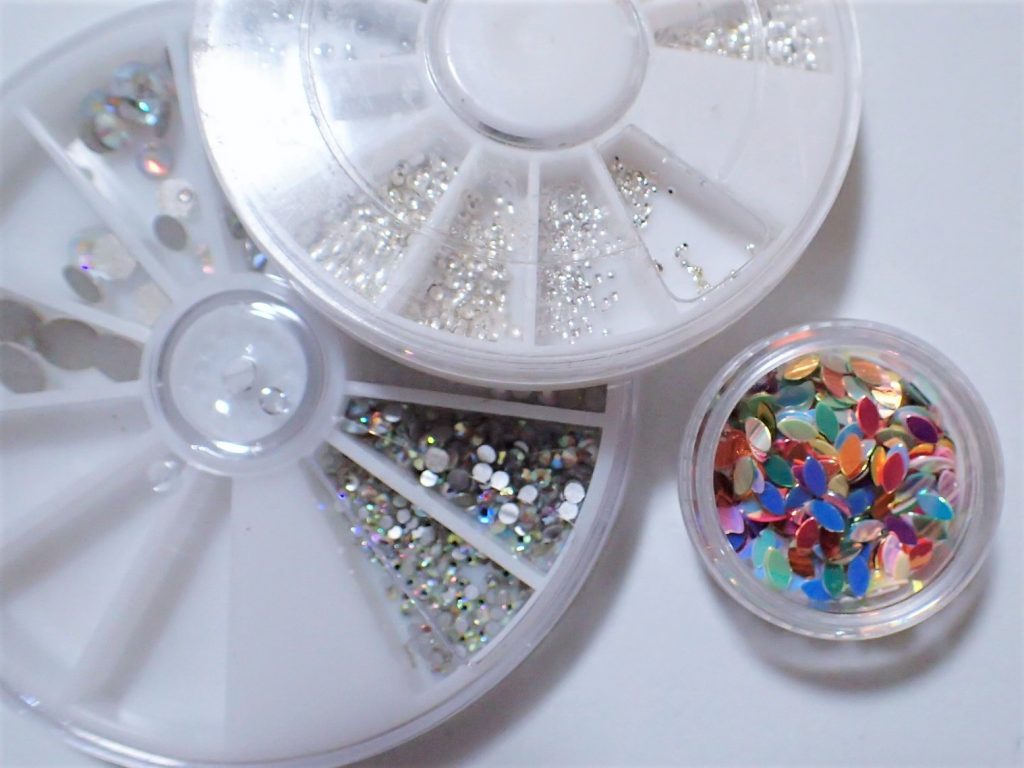 今回使用しているのは左のやや厚みがある方なので、ストーンや大きめパーツを乗せる時のように、セシェで隙間を埋めてから全体を覆うと、凹凸が気にならないと思います。