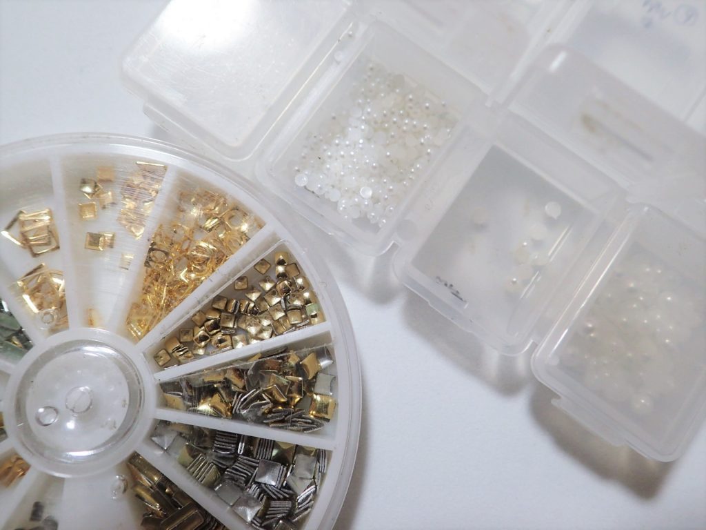 ネイルシールだけでもいいのですが、アクセントに中央には極小スタッズをプラス。シールだけよりは存在感がアップします!