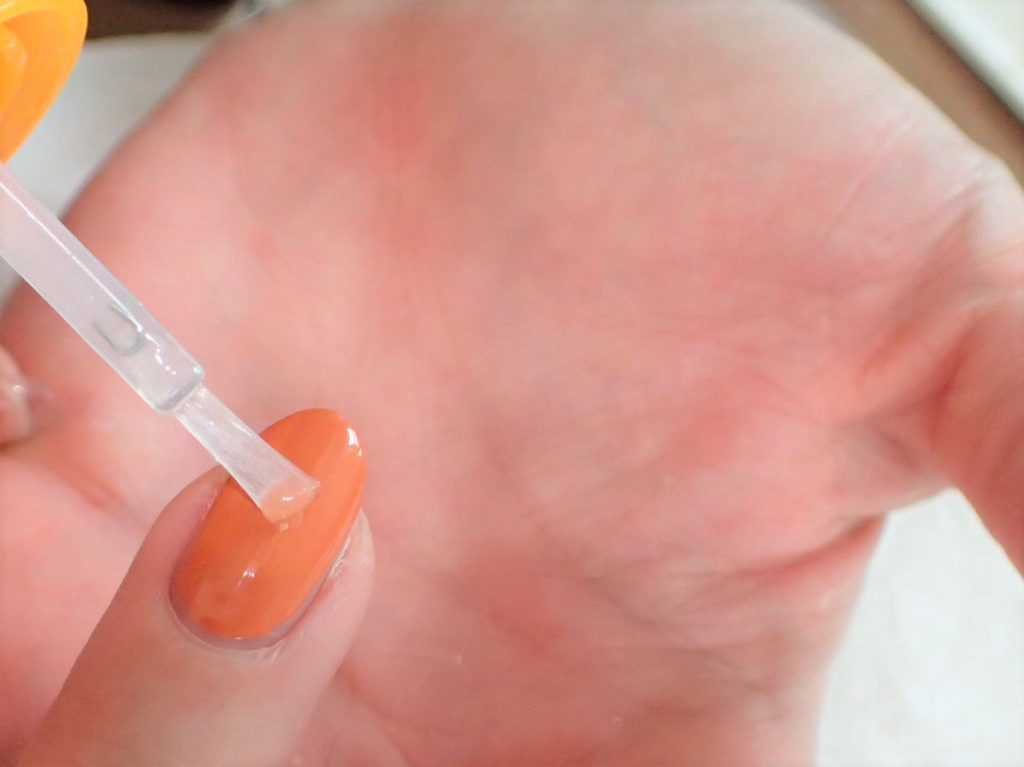 上画像のように余分なカラーはアルミホイル上で落としてから、実際に爪にポンポンします。