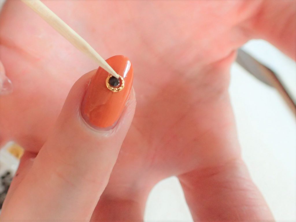 パーツを乗せるところに薄くトップコートを塗り、パーツを乗せます。