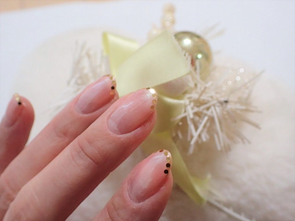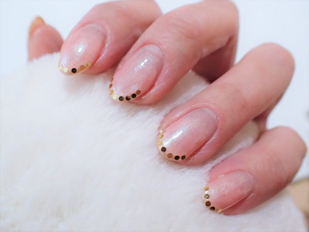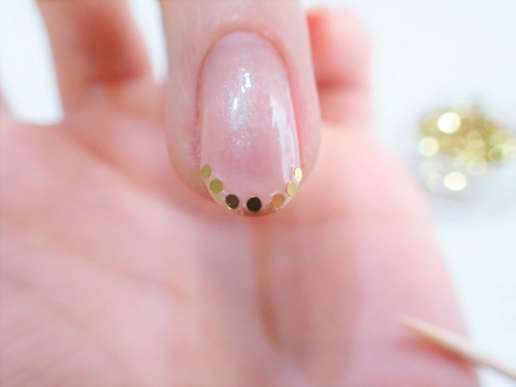 フレンチのように先端にホログラムを並べ、トップコートを塗ったら完成です。