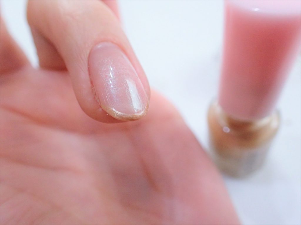 カラーは基本に度塗りで発色させたいので、再度オーロラピンクを塗ります。だいたい中心ぐらいまでです。