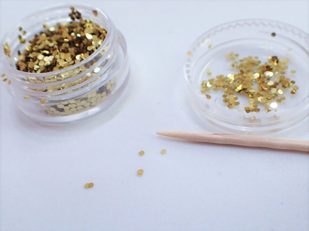 アートを締めるためにもパーツを乗せますが、柄を邪魔しないようここは控えめに。